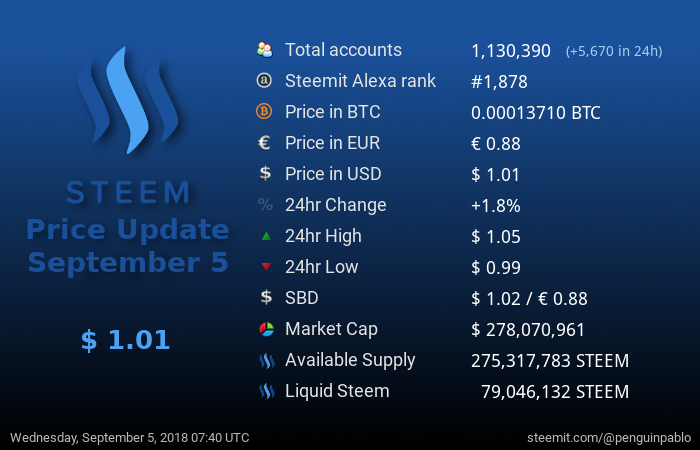 Welcome to my Steem Stats Report for Wednesday, September 5, 2018. All data comes directly from the Steem blockchain and is based on UTC time.