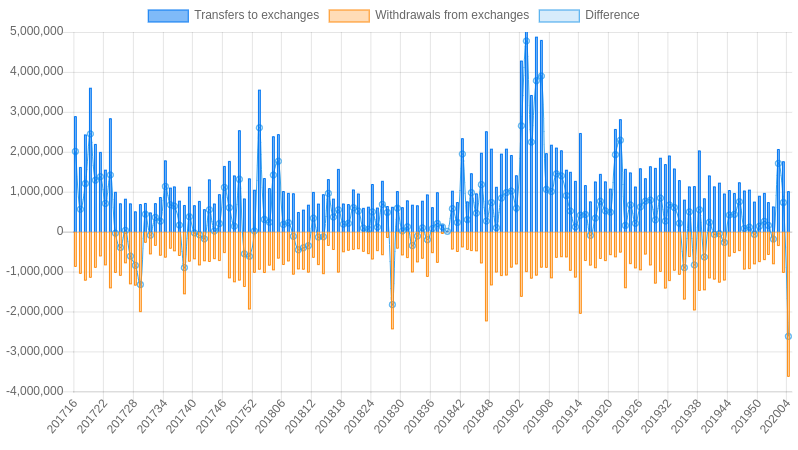 | Date | Transfers to exchanges | Withdrawals from exchanges | Difference |
