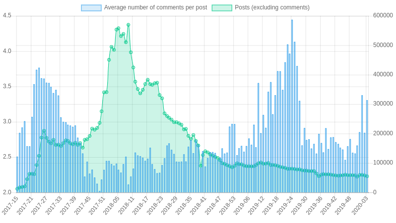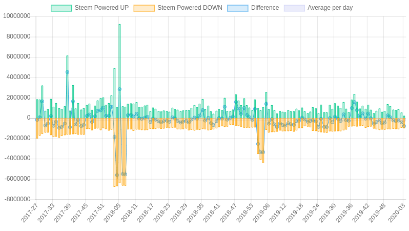 | 2020-03 | 222,301 STEEM | 1,015,648 STEEM | -793,347 STEEM |