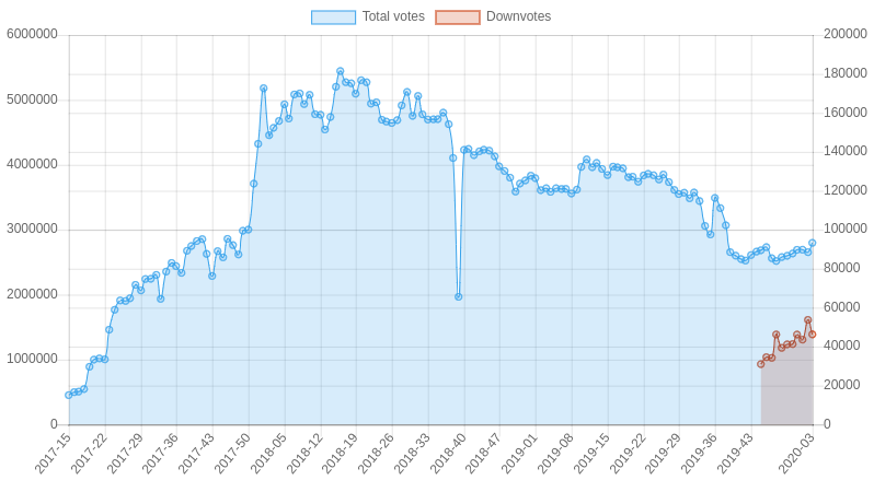 | 202003 | 1,763,076 STEEM | 1,034,085 STEEM | 728,991 STEEM |