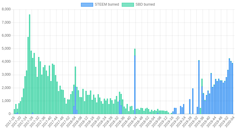 | 202004 | 1,014,561 STEEM | 3,637,868 STEEM | -2,623,307 STEEM |