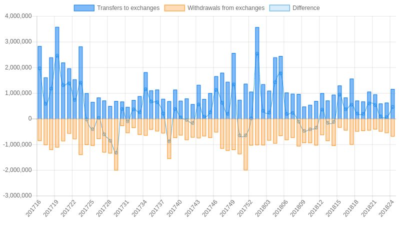 | Date | Transfers to exchanges | Withdrawals from exchanges | Difference |