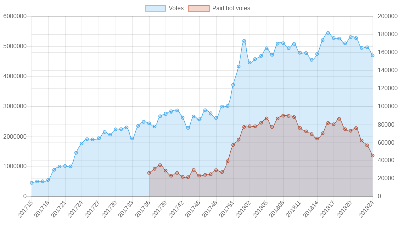 | Date | Votes | Paid bot votes | Percent bot votes |