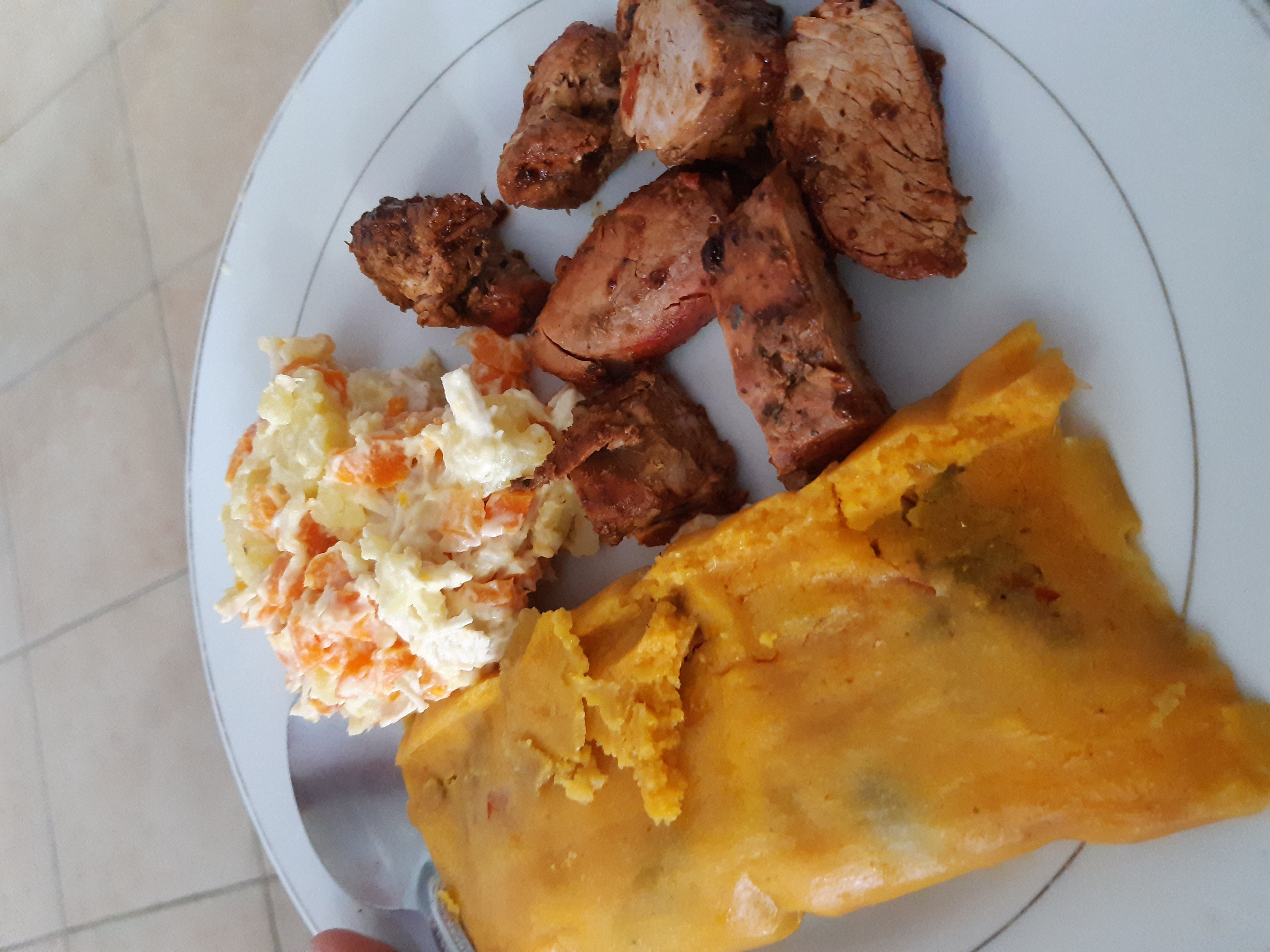 Luego fui almorzar y mi cuñada me dio un almuerzo navideño aca en esta fechas de febrero jajsjs.