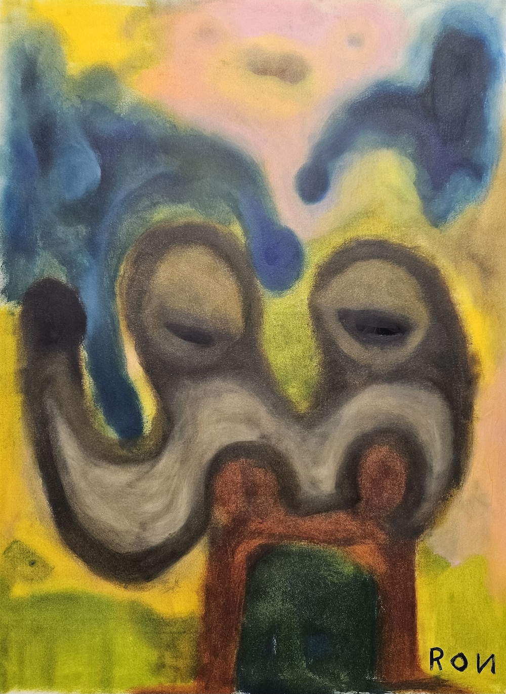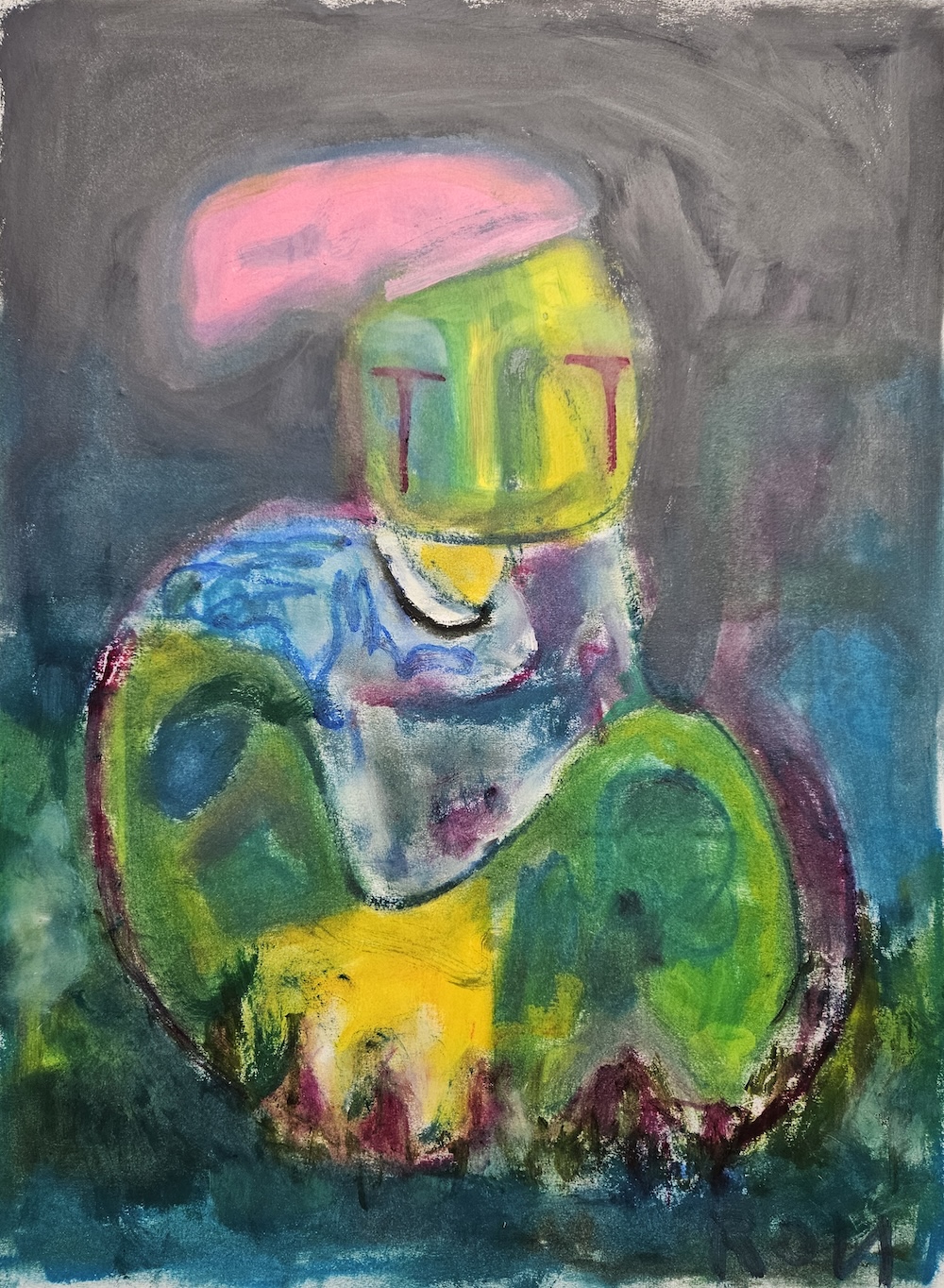 *Thinking Never Works" 2026. Oil on paper, 18 x 24"