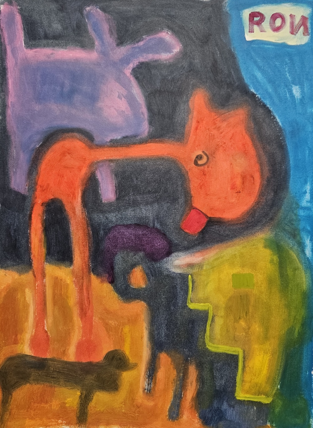 Wet Clown Finished With Sticks and Rags 2026. Oil on paper. 18 x 24"