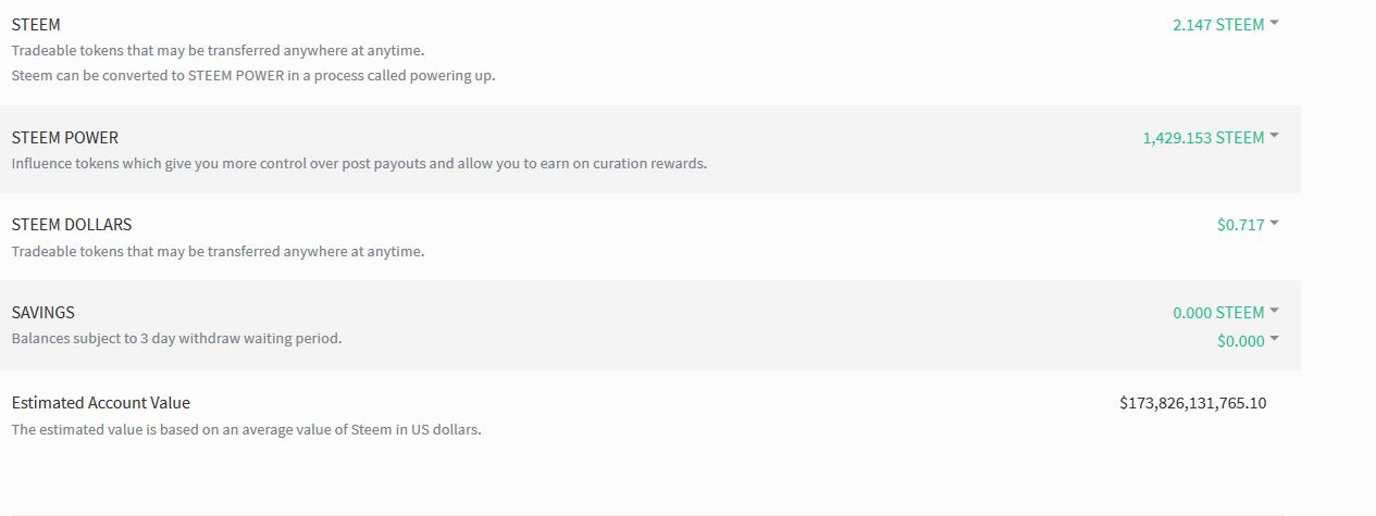 I got home and checked my steemit account when looking at my wallet I noticed a funny bug which shows everyone's usd account value show insane high valuations. Made me wonder if maybe its a foreshadow when steem is $1,000 each!