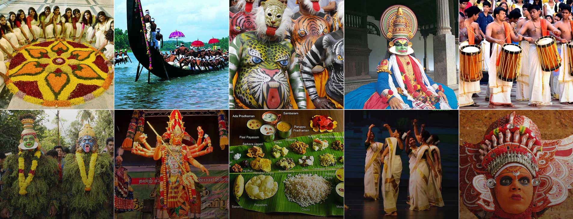Elaborate celebrations, beautiful folk songs, majestic dances, exciting games, elephants with heads, boats and flowers are the most important parts of the harvest festival of Onam. Government of India respects this festival but failed to spread it all over the world.Government celebrates it as 'Tourist Week'.Tourists from all over the world come to Kerala to be an important part of Onam.