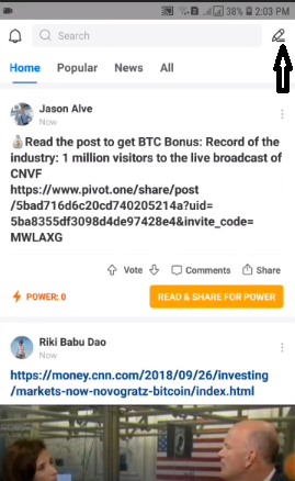 you press on that one and then press post from here you see we just pasted the article and then press post and then press post now there it is now it is very important that when you share an article and other pivot members read your shared article make sure that they still have read power points remaining otherwise you cannot claim your share points as well now after earning your points for the day. The next day you will notice that your points will be reset to zero do not fret do not worry about it.