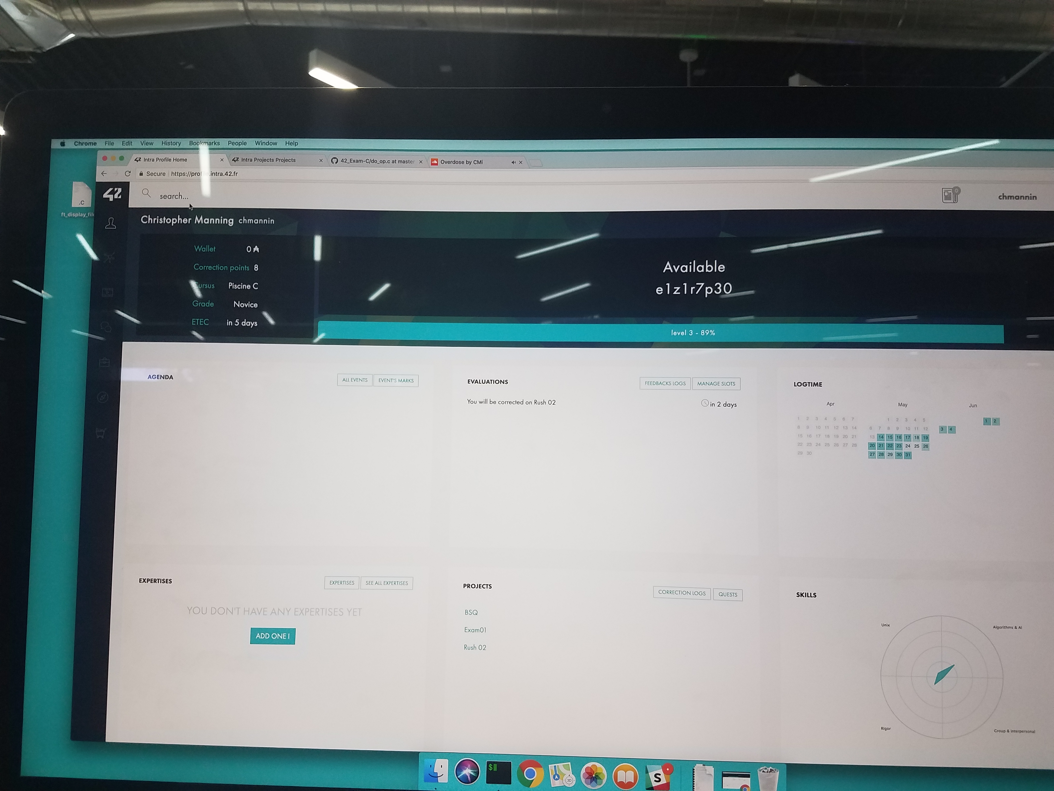 Ive reached level 3.89 in the piscine!!! i cant thank my fellow class mates enough for this achievement, as for the first time i was here for a piscine i was stuck at level 0.25 :(. I pray that i make it this time for the robotics and vr development courses