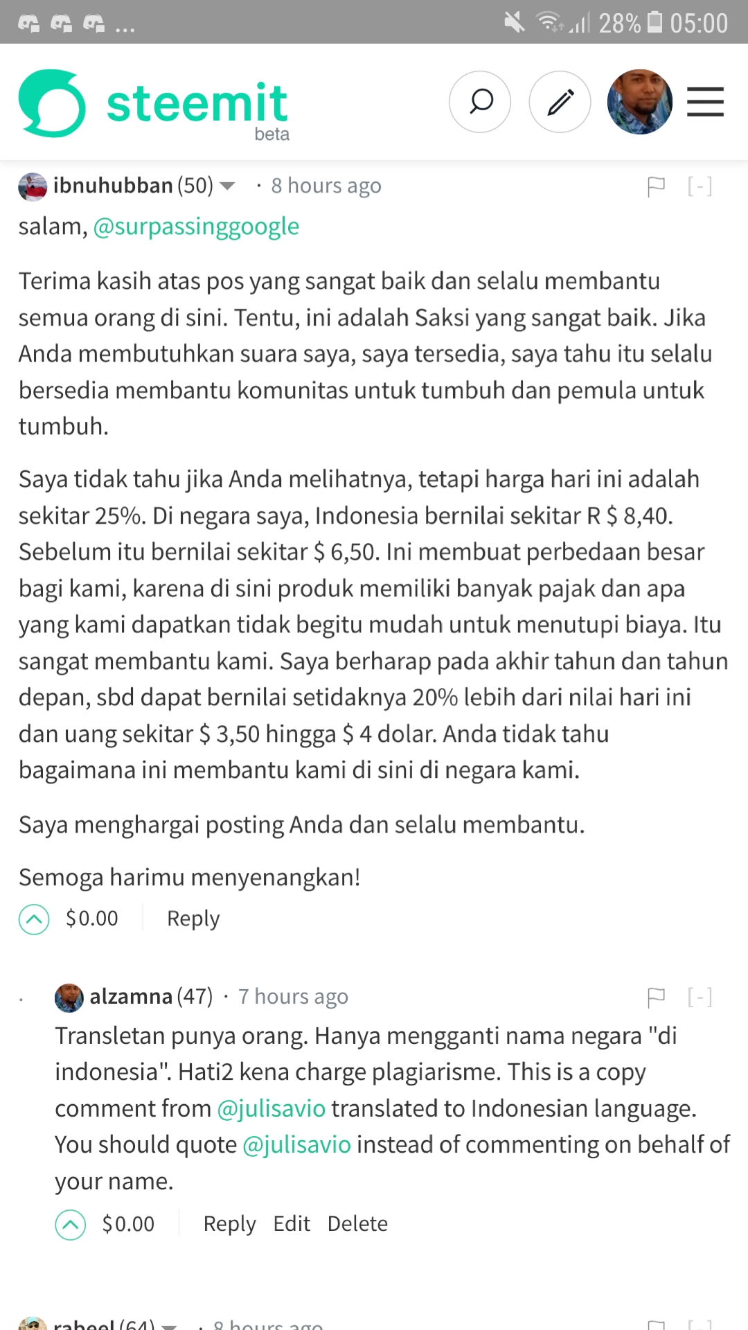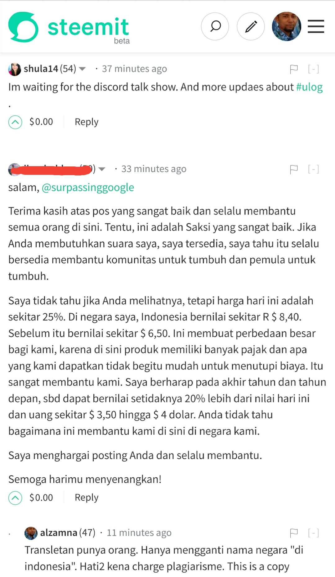 On the above screenshot. That is your comment thst had been translated to Indonesia language. He commented using your comment. Your comment on @surpassinggoogle post.