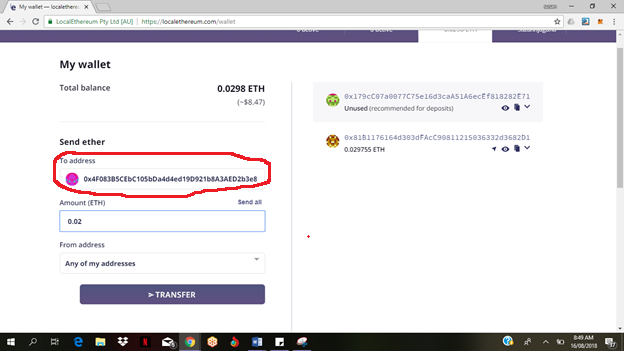 Then send the Ether directly from https://localethereum.com/ wallet to your Ethereum wallet you had created earlier. If you do not have an Ethereum wallet, Click https://ubricoin.ubrica.com/buy-ubricoin/ to learn how to create one.