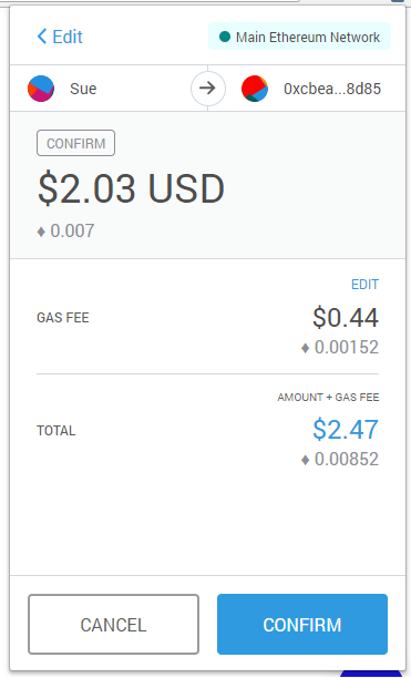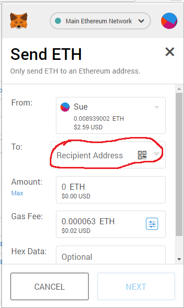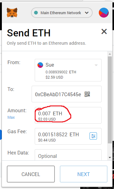 Enter the amount of Ethers you want to send, and then hit NEXT.