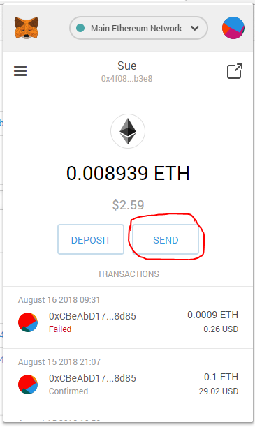 After copying the Ubricoin contract address, open your Ethereum wallet and click SEND.