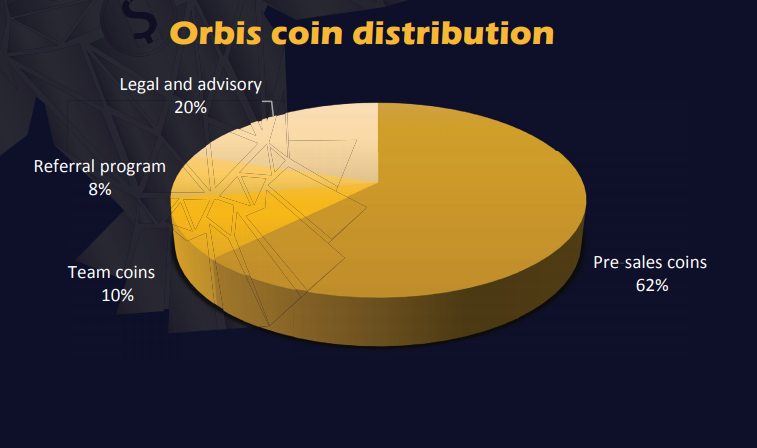 The main token of the platform is the ORBS token which is the ERBS - 20 standard based on Ethereum block system. Main sales start from May 1, 2018 and will run until October 29, 2018. To date, this project has already sold more than 3,799,645 ORBIS. This is close to 2 million people. Euro.