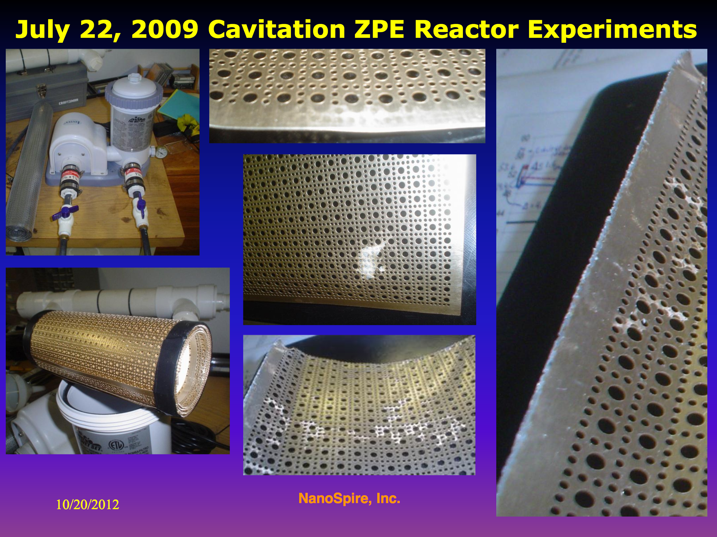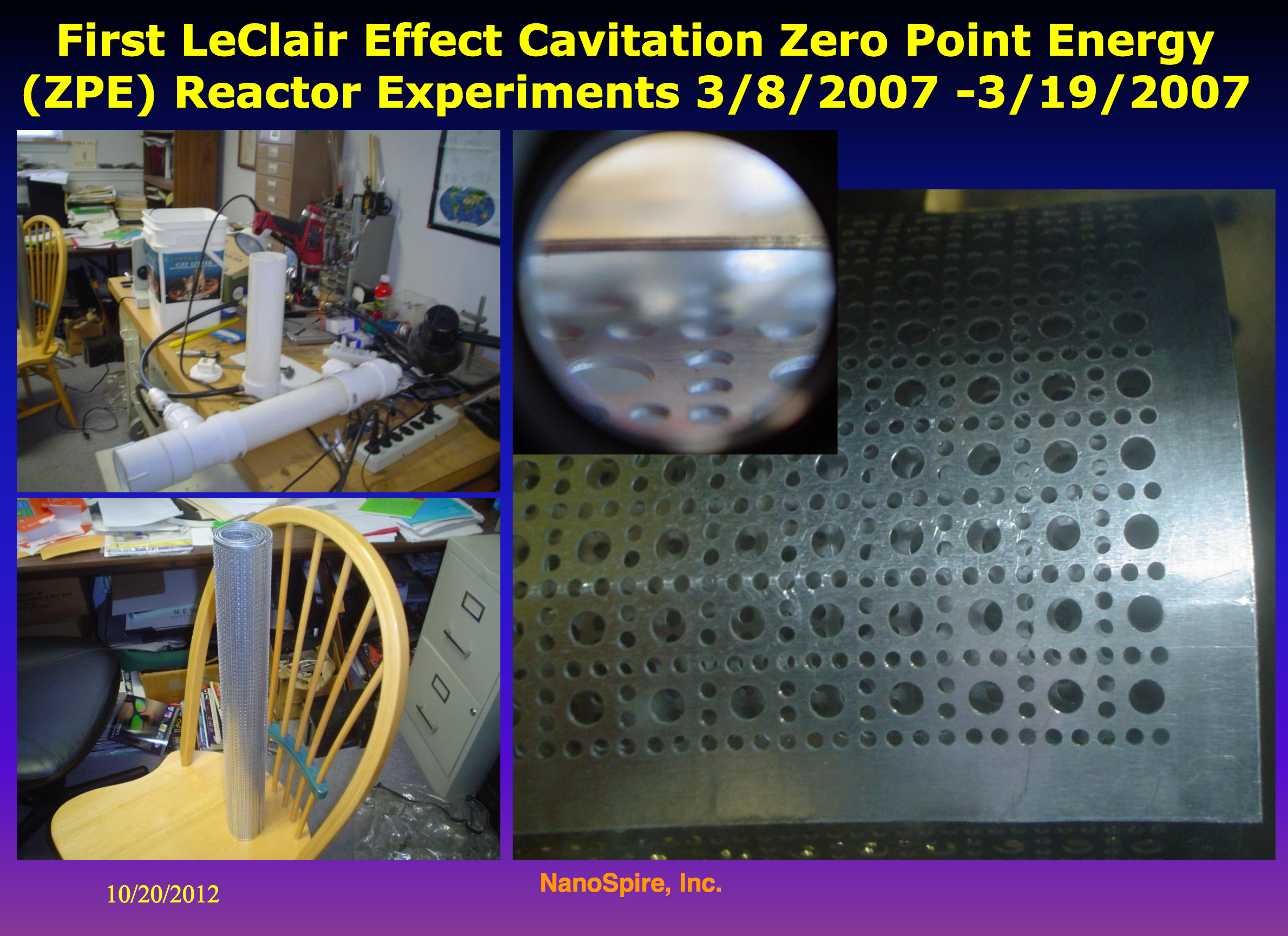 Marc LeClair, of Nanospire Inc., built a cavitation device in his garage for $250 that generated nuclear radiation and formed diamonds on the components. (using only water).
