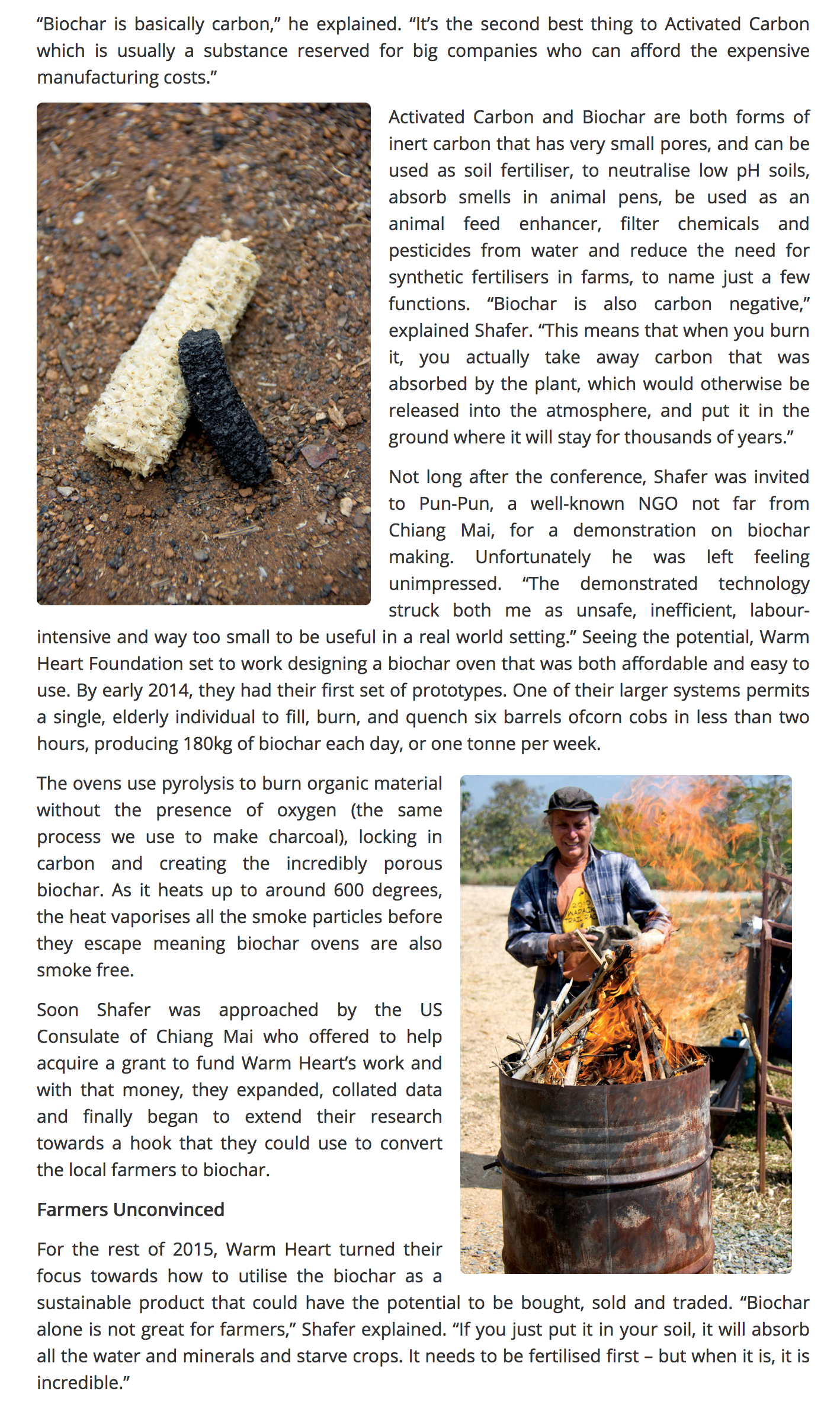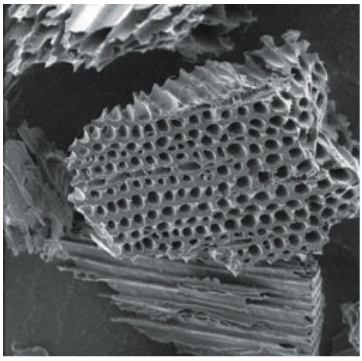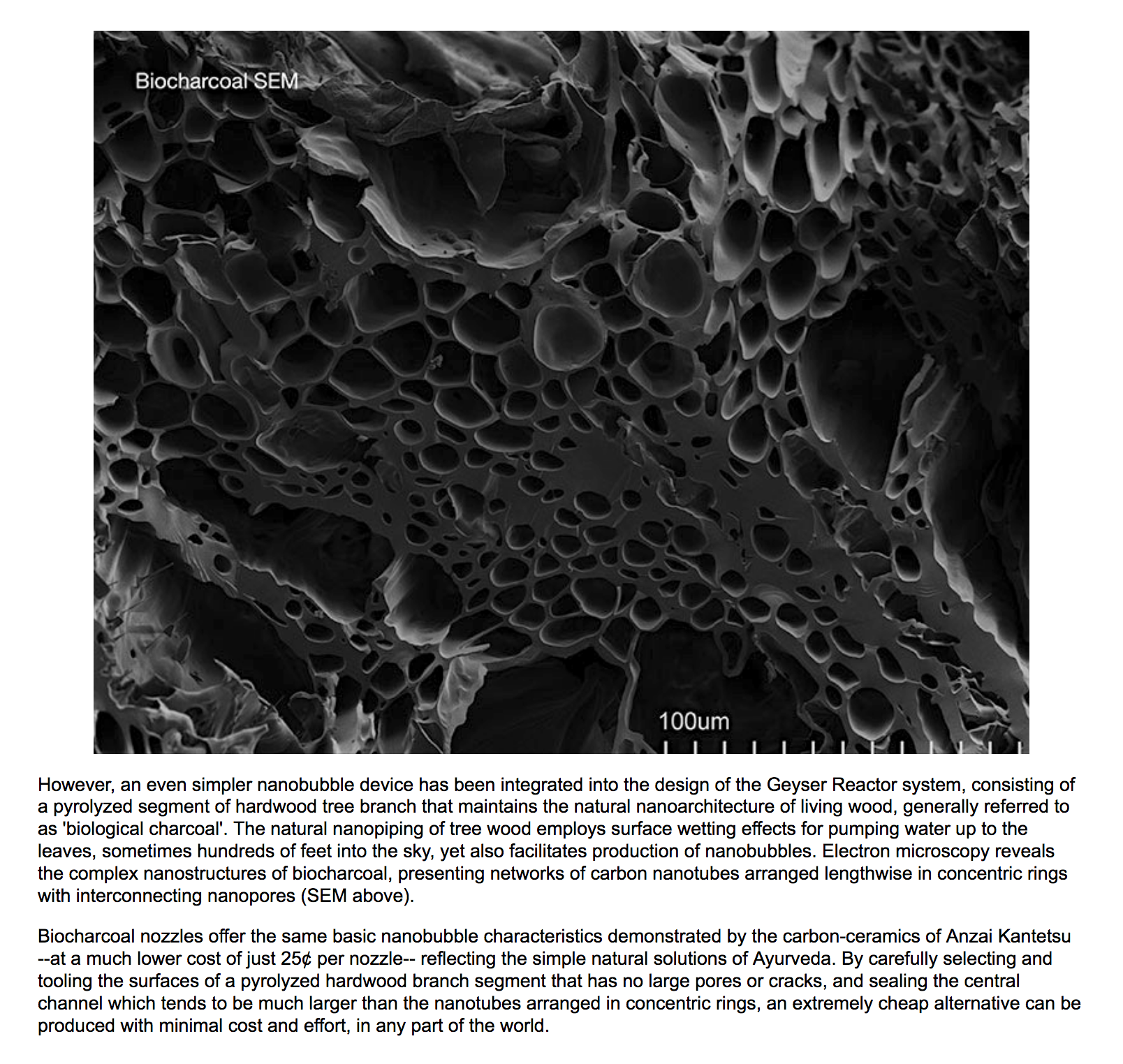The pores in the carbon are micron sized and produce microbubbles. (which normally dissipate)