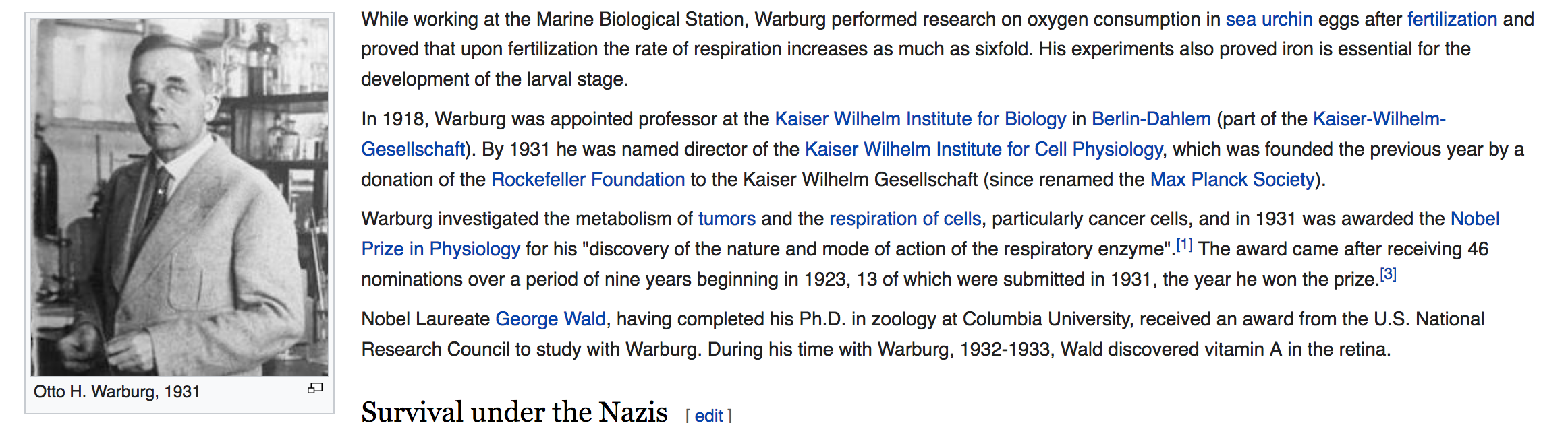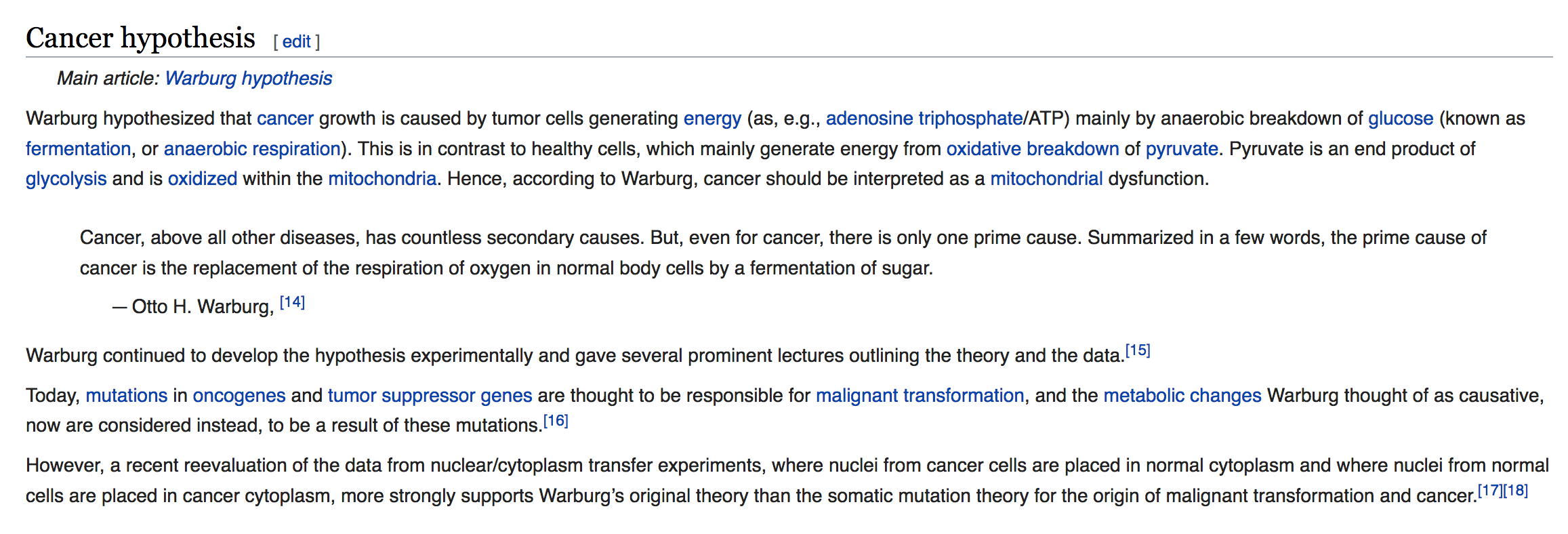 Here is an excerpt on Otto Heinrich Warburg's work from Wikipedia:
