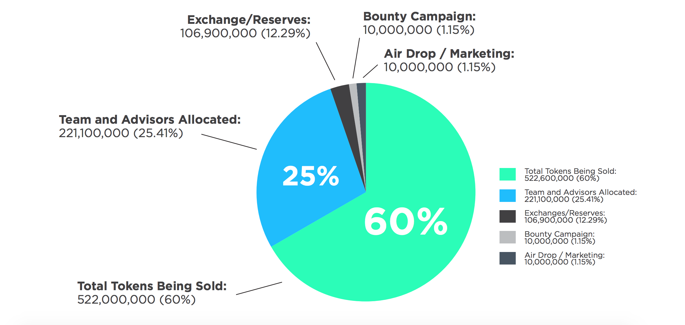 Общее количество токенов - 870 000 000 000 DBCCoin