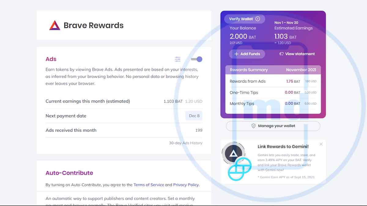 - Users earn Basic Attention Tokens while viewing ads(optional you can simply disable)