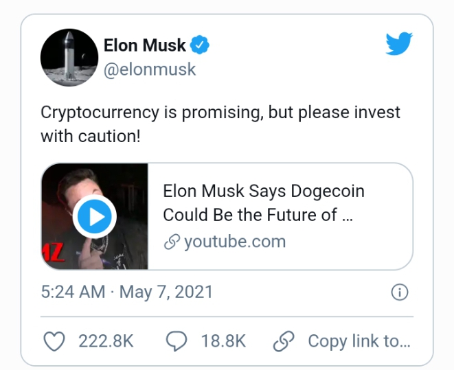 In the screenshot above we can see a post of Elon Musk mentioning that Dodgecoin can be the future and with this post it helps in the increase of the Dodgecoin.