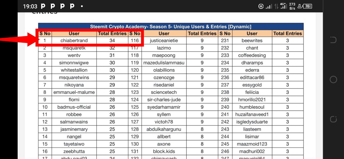 SourceDuring season5 of the crypto academy, I adapted very well and was Super performing in most of the courses especially the ones that concern trading and cane out weekly top three best students on two occasions. I was also 4 students on numerous occasions and that made me came out overall number 5 in the intermediate tier with a consolidated score of 104.9 as seen below