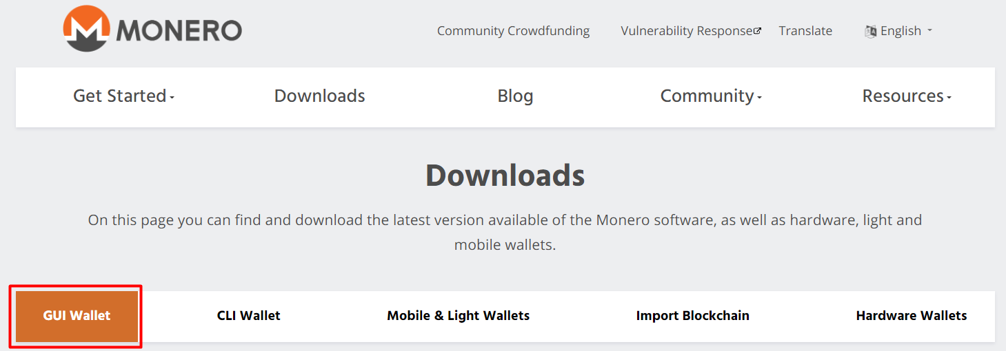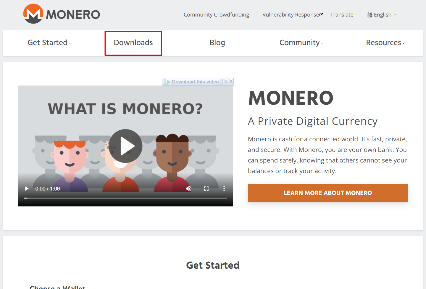 1. Open the official website of Monero in the browser, then select the Download option at the top of the page.