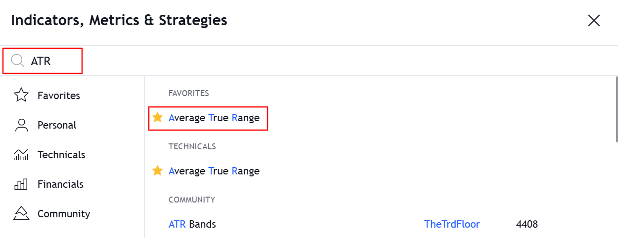 In the indicators section search for the ATR indicator to use ATR based trailing stop.