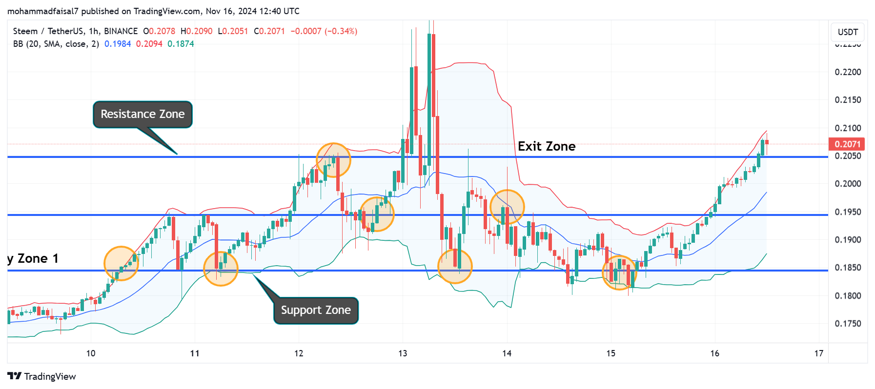 We can use a breakout strategy to enter when the price breaches the resistance supported by volume. For example if Steem breaks above $0.23 on strong volume it signals a potential continuation of the bull run.