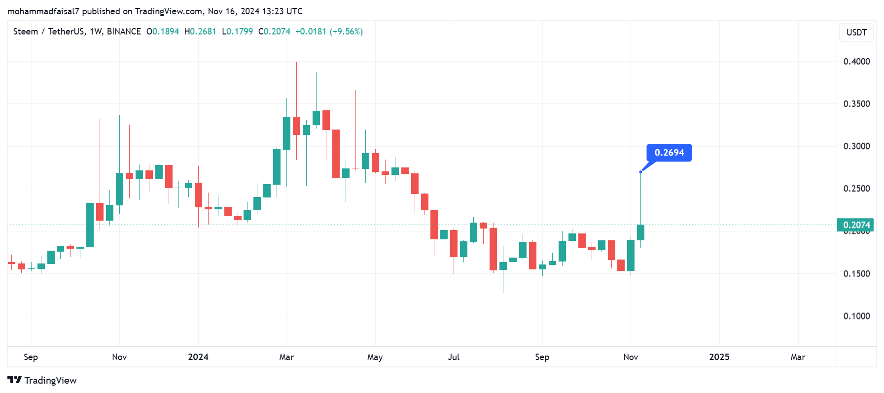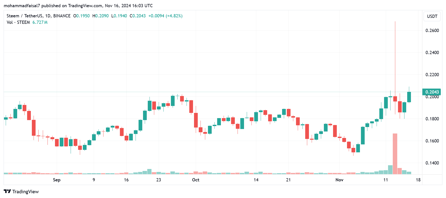 - Price of STEEM: $0.2009