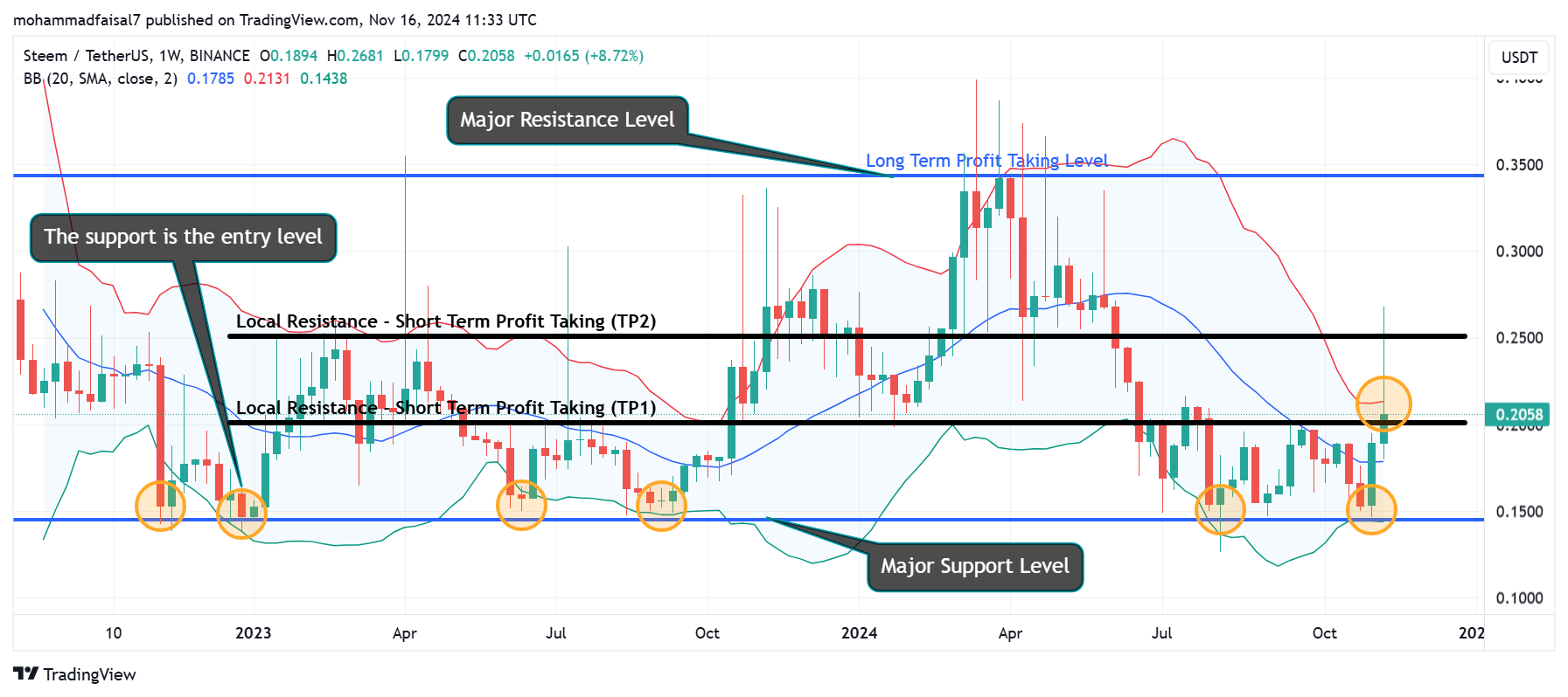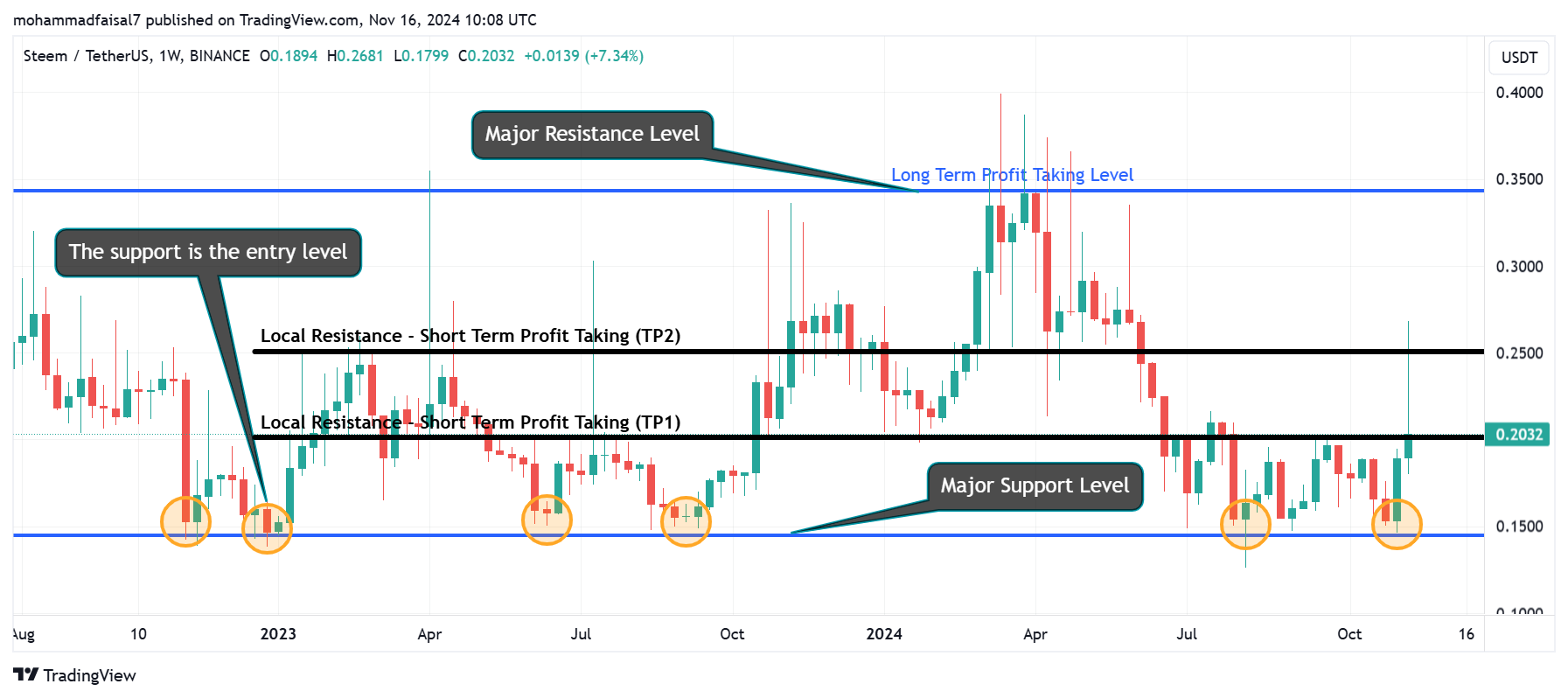 - TP1: The most recent local resistance is the first take profit area which is at the price level of $0.2025 so this is the good area where one can make reasonable profit by taking entry at the price level of $0.1450.