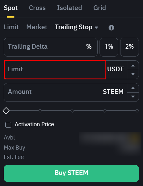 - For a long position (buying STEEM):