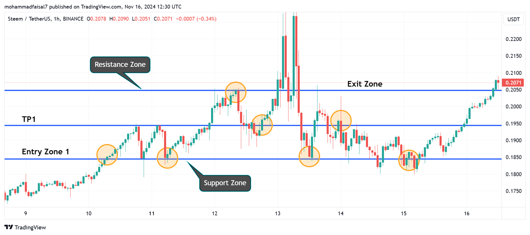 - Tip: Place stops slightly above/below these levels such as $0.198, $0.248.