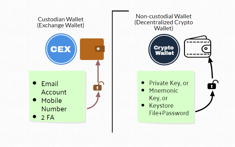 Exchange Wallet(Centralized) & Decentralized crypto wallet.