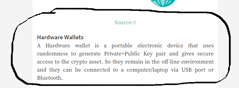 A Hardware wallet is a portable electronic device that uses randomness to generate Private+Public Key pair and gives secure access to the crypto asset. So they remain in the off-line environment and they can be connected to a computer/laptop via USB port or Bluetooth.
