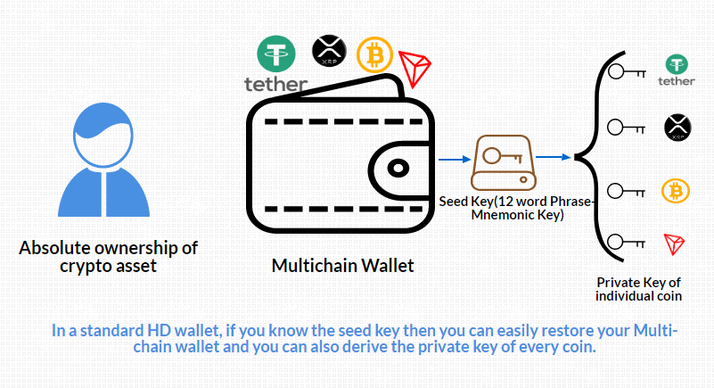 Seed Key & the individual private keys of different coins(heterogeneous Blockchains)