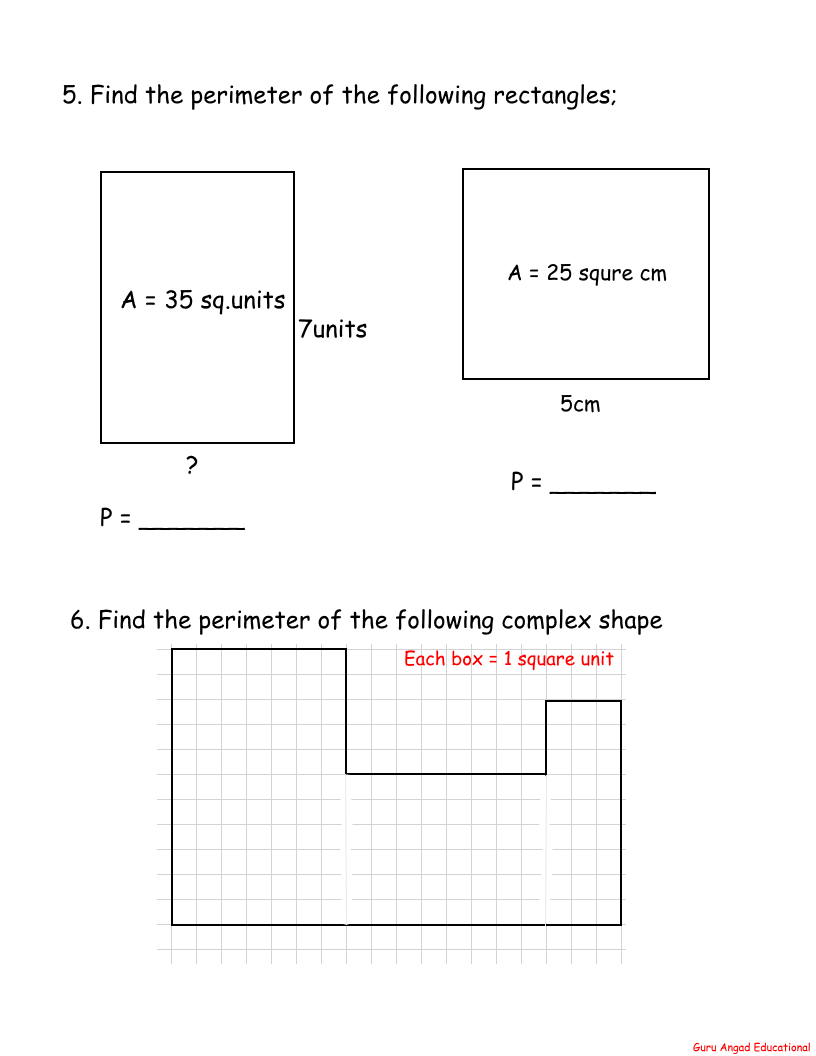 4TH GRADE MATH - AREA AND PERIMETER OF A RECTANGLE WORKSHEETS
