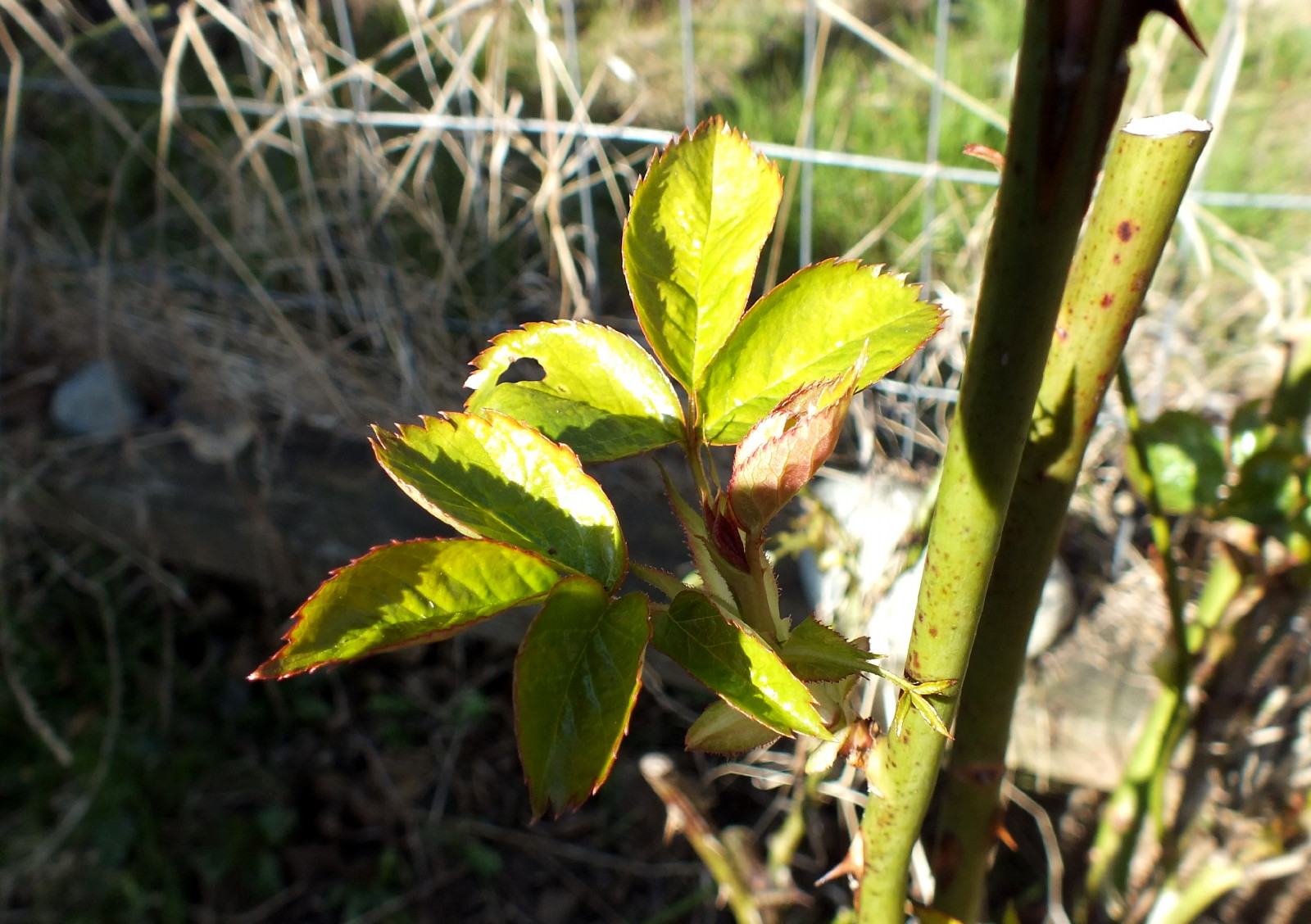 On the positive news front, a rose bush we weren't sure whether had died over the winter is showing signs of life: