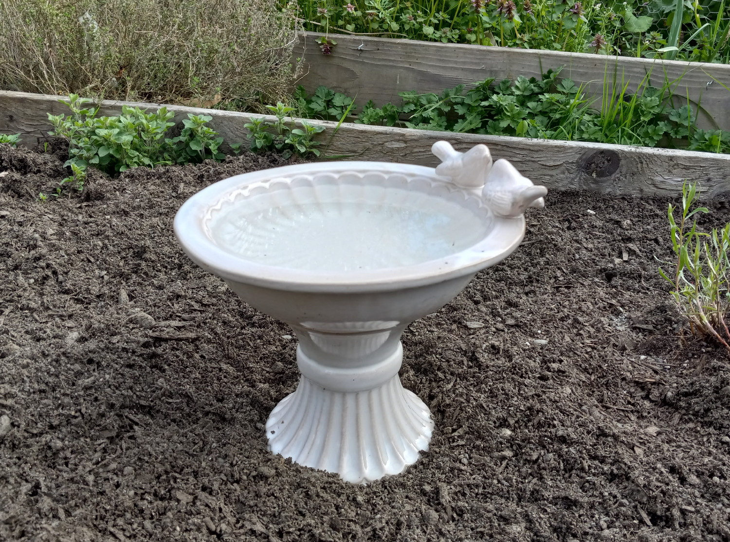 After cleaning up the herb bed and adding a fresh layer of soil, we decided to put a small birdbath there. We get a lot of birds in our garden, and hopefully they will appreciate it, by the time summer rolls around and rain becomes scarce.