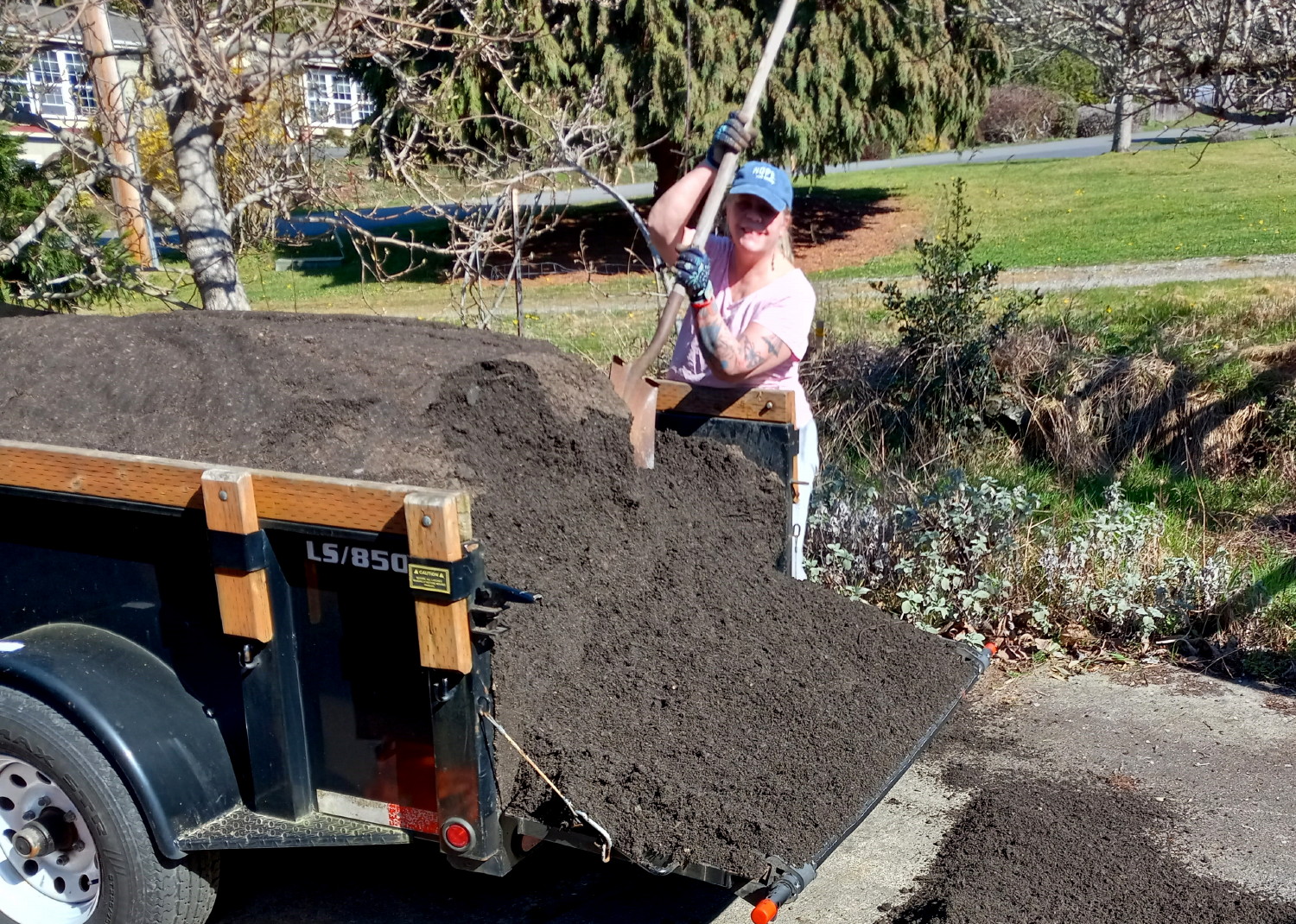 A friend brought a trailer load of high quality garden soil, back in March. We're going to top off all our raised beds, and then the rest will become the basis for the newest potato bed.