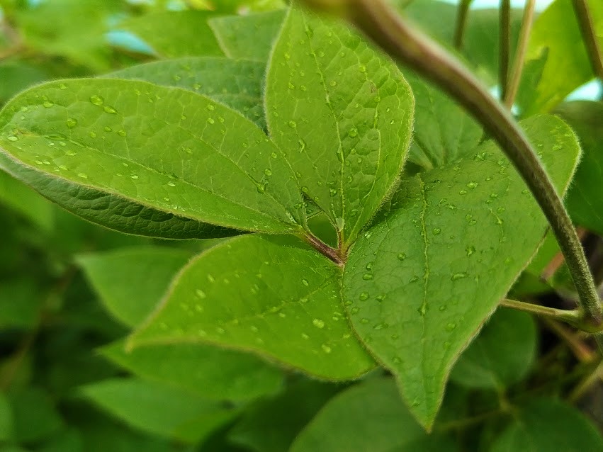 Несколько лет назад соседи по даче подарили мне отросток. Я даже представить не могла, какой красавец из него вырастет! Из ростка образовался мощный высокий (около 2.5 м) куст, состоящий из нескольких лиан.