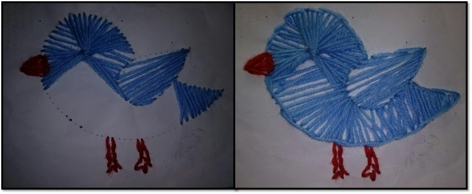 Two days ago my husband (Dad) bought my son a new pet, it was a nice blue chicken. My son is very happy with him, so we decided to make the art of his pet's strings. It was done this way: