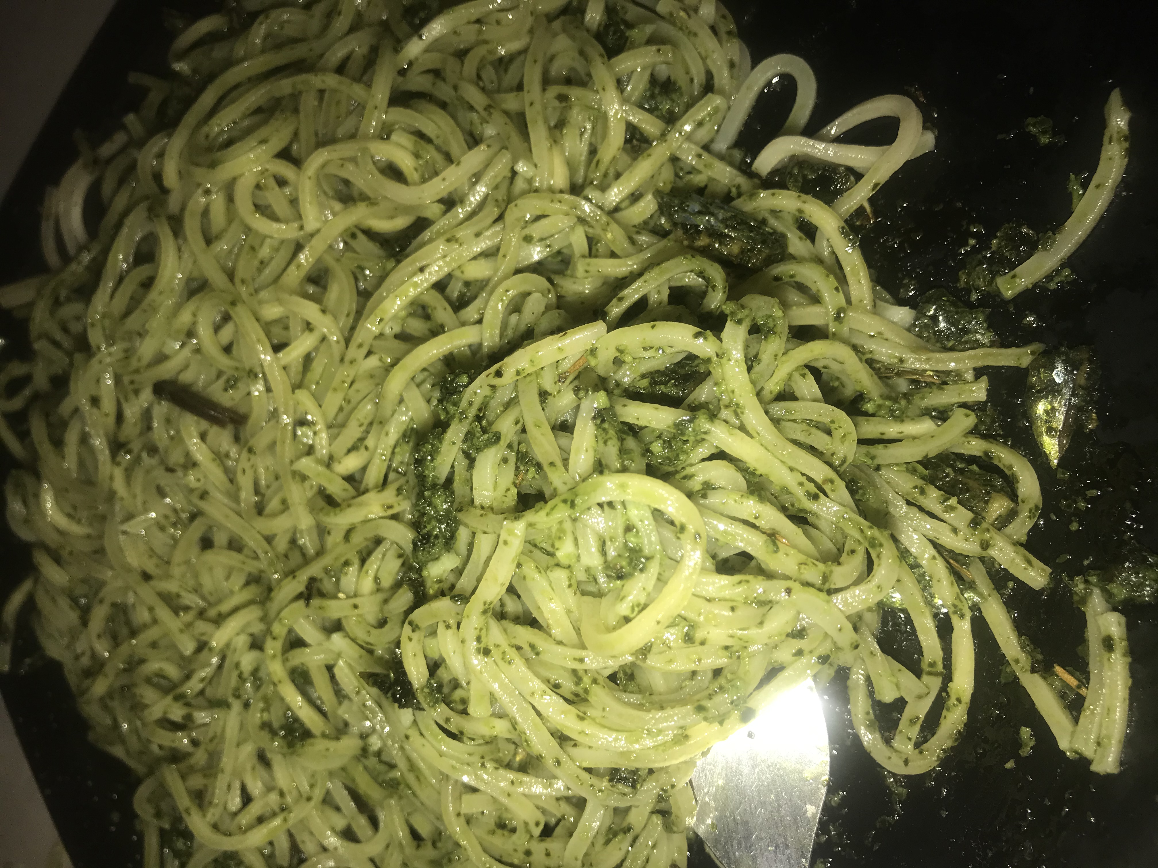 Pancit noodles in malunggay (Moringa) and basil sauce