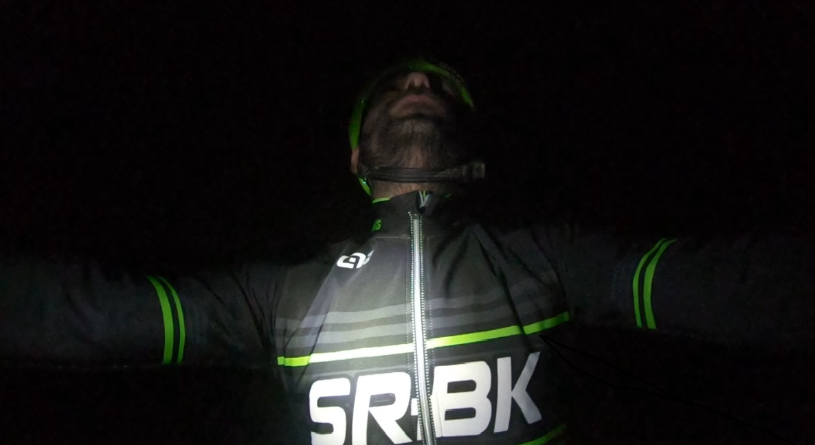 Sólo con la bici, la iluminación alcanza sólo unos metros y el resto totalmente oscuro. De vez en cuando escuchas el ruido de algún animal al que probablemente estaré perturbando su descanso y a pedalear.