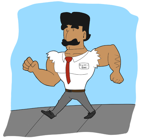 What better super power could he have? I think we all would like a mustache with as much power as his. I like that it comes to life after the initial fight. Like that's the backup plan if his muscles and brawn don't save him.
