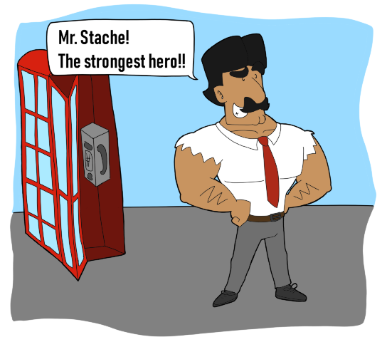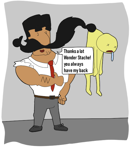 And this is how Mr. Stache's super power is revealed: Super Strength and a shape shifting Mustache called Wonder Stache.