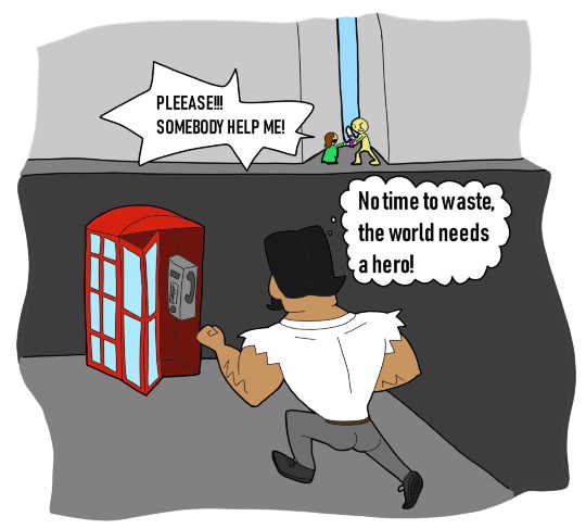 I think it's hilarious that he moves into the telephone booth to get into his super hero outfit but all that ends up being is him removing the name tag LOL but I do have one question, what is that white bubble with the "x" mark next to his mustache in the fifth image?