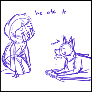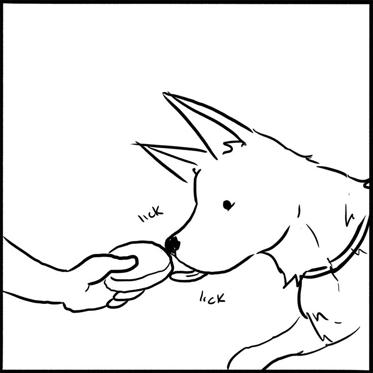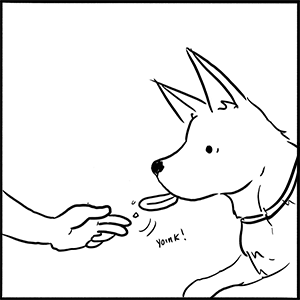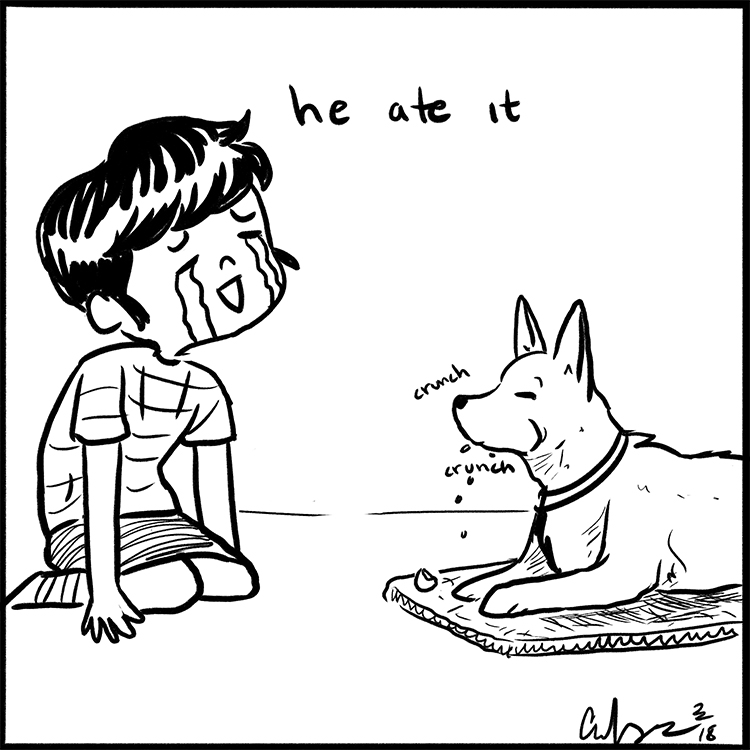 What a cute comic =). I'm so glad the dog doesn't spit it back out, which sometimes happen with my doggo.