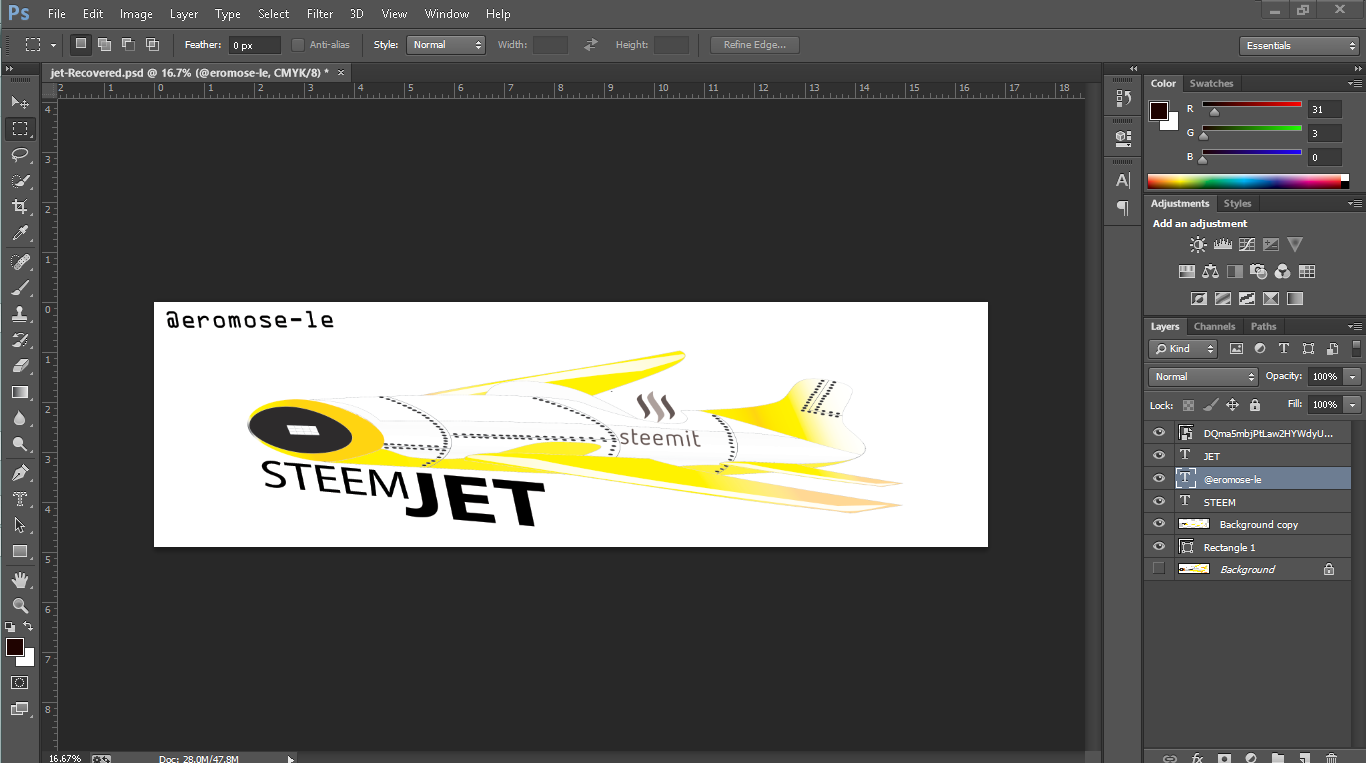 Hello Sir @Dimimp. Here is my designs for STEEMJET LOGO CONTEST I designed it with my Coreldraw suit 5X. I hope you like it.