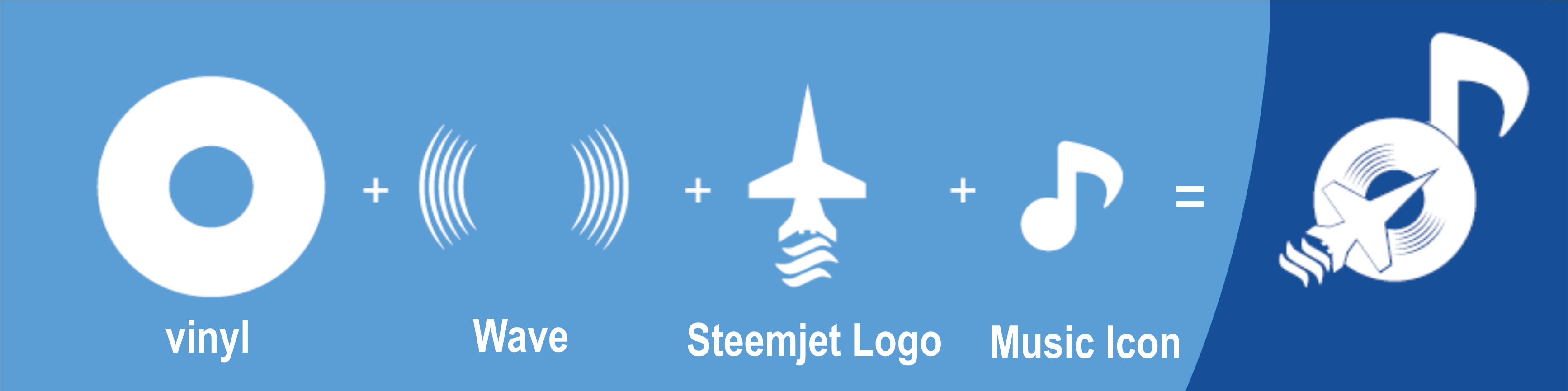 I update the first design above and added an element to make it look like the music tone. With this, it has a feel of music apart from the vinyl. Just the icon alone, people will know it has to do with music without zooming into the circle to know its a vinyl. Vinyl The phonograph disc record used as a medium for music reproduction throughout the 20th Century. Wave This is designed to serve three purposes; Sound waves: Produced when making music and produced by jet when it is in motion. Vinyl Projection: Representation of the image seen on a phonographic disc. SteemJet Logo The official logo of Steemjet. Music Icon A very essential vector representation of music. Color names and Hex codes used from left to right Blue (danube) - #5B9DD5 Blue (fun blue) - #164F97 Gold (Pizza) - #C29F15 Black - #000000LOGO PROCESS